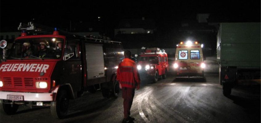 Nach eintreffen der fünf Gemeindefeuerwehren (Bad Mühllacken, Feldkirchen, Landshaag, Lacken und Mühldorf) wurde sofort mit den Berge und Löscharbeiten begonnen. Erschwert wurden dies durch die starke Rauchentwicklung im Gebäude und die bei Weitem nicht ausreichende Löschwasserversorgung im Bereich der Maistrocknungsanlage. So brach das Hydrantennetz der angrenzenden Siedlung Rosenleiten bereits nach etwa 5 Minuten zusammen. Daraufhin wurden hunderte Meter Schlauch von den benachbarten Fischteichen und Biotopen gelegt um die für den Innenangriff mit HD-Rohr erforderlichen Tankwägen speisen zu können. Duch die sehr gute Zusammenarbeit zwischen den 5 Feuerwehren und den Samariterbund Feldkirchen konnten die Verletzten Personen schnell geborgen, versorgt und abtransportiert werden.