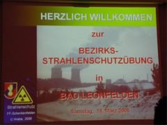 Am 25.03.2006 fand die Bezirksstrahleneinsatzübung in Bad Leonfelden statt. Diese Übung wurde von der Freiwilligen Feuerwehr Bad Leonfelden ausgearbeitet und fand auf Grund der Schneemengen im Feuerwehrhaus statt. Der Schwerpunkt dieser Übung war die Dekontamination strahlenbehafterer Personen und Sachen. Zu diesem Zweck wurde die Dekontaminationsstasse des Landesfeuerwehrkommandos an einem Modell vergeführt. Weiters wurde vom Kameraden Hraba aus Schenkenfelden ein Theorieblock zur diesem Thema im Lehrsaal vorgeführt. Nach dem Theorieteil versuchten wir das gehörte Wissen in die Praxis umzusetzen. Es wurde eine behelfsmässige Dekostrasse aufgebaut und mit einem Spürtrupp getestet.