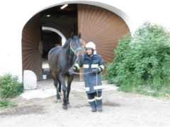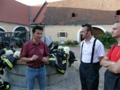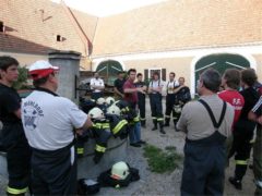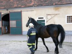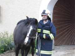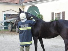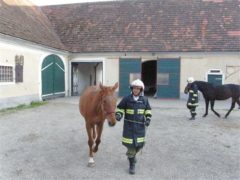 Das Schloss Mühldorf beherbergt neben einem Hotel und Seminarräumen auch eine Tierarztpraxis mit Stallungen für ca. 50 Pferde. Am 13. Mai 2008 hatte unsere Feuerwehr im Rahmen der monatlichen Gruppenübung die Möglichkeit, das Einsatzszenario einer Pferderettung im Brandfall zu beüben. Nach der fachkundigen Einschulung der Kameraden, durch den Besitzer und Veterinärmediziner Mag. Robert Würmer, wurde dieses neu erworbene Wissen über das Verhalten und die Eingenheiten von Pferden, sofort in die Praxis umgesetzt. Jeder Übungsteilnehmer hatte dabei die seltene Gelegenheit, ein Pferd aus seiner „sicheren“ Box zu führen und sowohl den Schritt als auch den Trab mit diesen großen Tieren zu üben. Weiters wurde dabei auch das Verhalten der Pferde auf die doch etwas ungewohnte, reflektierende Kleidung der Einsatzkräfte getestet. Dank dieser Übung konnte auch so manchem Mitglied unserer Feuerwehr die Scheue vor diesen riesigen Tieren genommen werden.