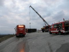 Die Aufräumarbeiten an der Unfallstelle konnten um ca. 19:00 Uhr abgeschlossen werden. Die Bergung des verunfallten Schulbusses wurde vom schweren Kran des Stützpunkts Bad Leonfelden durchgeführt.