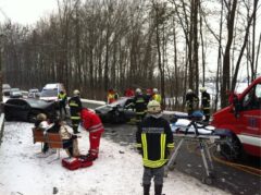 Am Freitag den 10.02.2012 wurde unsere Feuerwehr um 10:41 Uhr zu einem Verkehrsunfall mit eingeklemmter Person gerufen. Die beiden Fahrzeuge waren auf der in diesem Abschnitt glatten Aschacher Bundesstraße im Ortsteil Freudenstein frontal zusammengestoßen. Die Insassen eines PKW wurden dabei im Fahrzeug eingeklemmt und mussten mit dem hydraulischen Rettungsgerät befreit werden. Einer der beiden Lenker musste mit der Rettungshubschrauber, der andere Lenker sowie deren Beifahrer mit der Rettung zur weiteren Untersuchung in das Spital abtransportiert werden. Die Bundesstraße B131 war für die Aufräumungsarbeiten ca. 1,5 Stunden gesperrt. Der Verkehr wurde zwischenzeitlich über die Ortschaften Ach und Vogging umgeleitet. Die Straße konnte um 12:15 Uhr wieder für den Verkehr freigegeben werden. Der Einsatz wurde um 12:45 Uhr beendet.