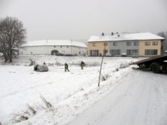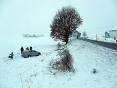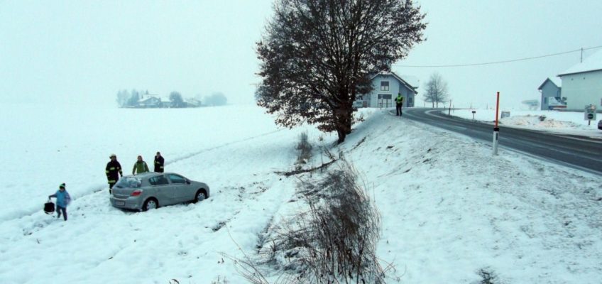 Am 28. Jänner 2013 wurde unsere Feuerwehr um 07:24 Uhr erneut zu einer Fahrzeugbergung in der Nähe unseres Feuerwehrhauses gerufen. Wie auch bereits am 22.12.2012 kam auch dieses Mal ein PKW von der schneeglatten Fahrbahn ab und rutschte über eine ca. 4m hohe Böschung. Das Fahrzeug überschlug sich auch dieses Mal und blieb dann im angrenzenden Feld liegen. Wie durch ein Wunder verfehlte die Lenkerin nur knapp einen Baum und blieb dadurch unverletzt. Das Fahrzeug wurde mit Hilfe einer Seilwinde schließlich auch dem Feld geborgen und so konnte der Einsatz um ca. 08:30 Uhr beendet werden.