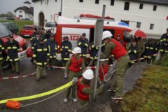 Nach sehr intensiven und wochenlangen Vorbereitungen der gesamten Feuerwehrmannschaft war es nun endlich soweit. Am Freitag den 17. April 2015 wurde um ca. 14:30 Uhr mit den ersten Teilabnahmen durch Bewerter des Bezirksfeuerwehrkommandos Urfahr-Umgebung begonnen. Die Löschgruppe war als erstes an der Reihe. Am Badesee II in Feldkirchen wurde die Nasslöschgruppe in Silber geprüft. Neben einem Löschangriff aus dem Kleinlöschfahrzeugt musste auch noch eine erfolgreiche Dichtheitsprobe der Saugschläuche absolviert werden. Danach wurde ebenfalls am Gelände des Badesees Feldkirchen die Technische Hilfeleistungsgruppe geprüft. Ebenfalls mit gezogenen Startnummern der Klasse Silber musste hierbei ein simulierter Technische-Hilfeleistungs-Einsatz Parcours mit Kleinrüstfahrzeug und Tanklöschfahrzeug erfolgreich absolviert werden. Um ca. 16:00 Uhr wurde dann im Feuerwehrhaus der FF-Mühldorf mit den theoretischen und praktischen Tests der Mannschaft begonnen. Das Kommando, das erweiterte Kommando und die Funktionsträger mussten sich dabei einer individuellen schriftlichen Prüfung unterziehen. 9 Mitglieder der Atemschutzgruppe, 8 Mitglieder des Lotsen und Nachrichtentrupps und 7 Mitglieder des Feuerwehr-Medizinischen-Dienstes stellten sich einer ebenfalls individuellen mündlichen Prüfung. Dem Rest der „Aktiven“ Mannschaft wurden theoretische und Praktische Fragen zur Feuerwehrorganisation und zur Ausrüstung bzw. deren Verwendung gestellt. Aber auch die Jugendgruppe war in diesen ersten Teil der Leistungsprüfung eingebunden. Als Pilotfeuerwehr stellte sich die Jugendgruppe unserer Wehr dieser Herausforderung. Die Mädchen und Burschen mussten ebenfalls zwei praktische Parcours in Technischer Hilfeleistung und im Löschangriff bestehen. Zusätzlich wurde auch den jüngsten eine mündliche Prüfung abverlangt.