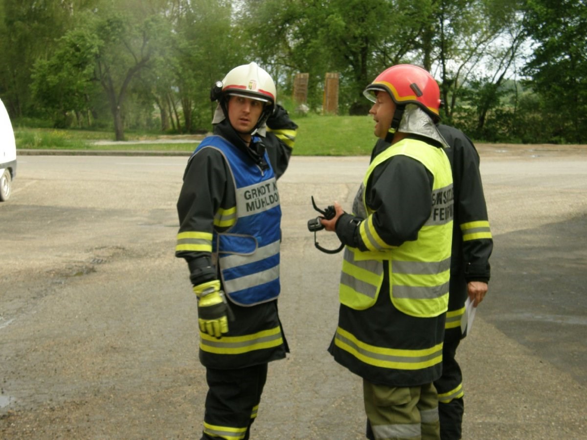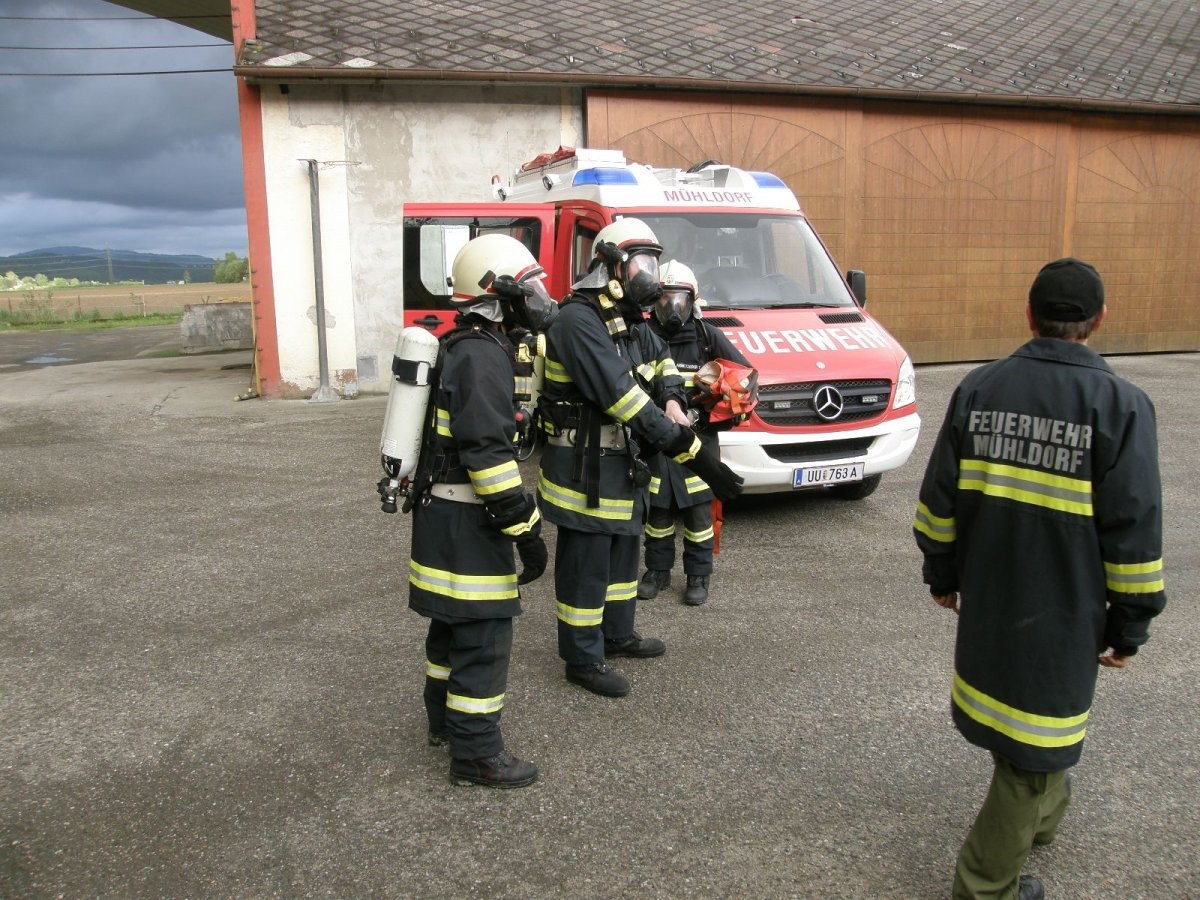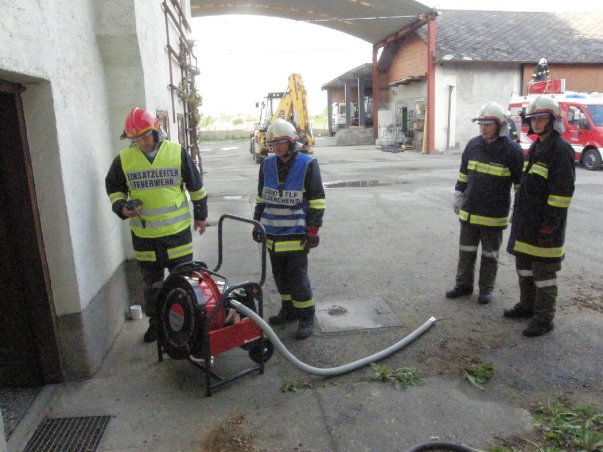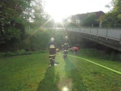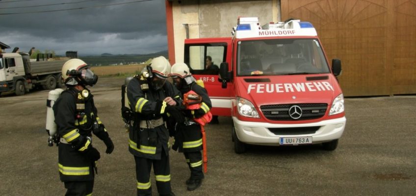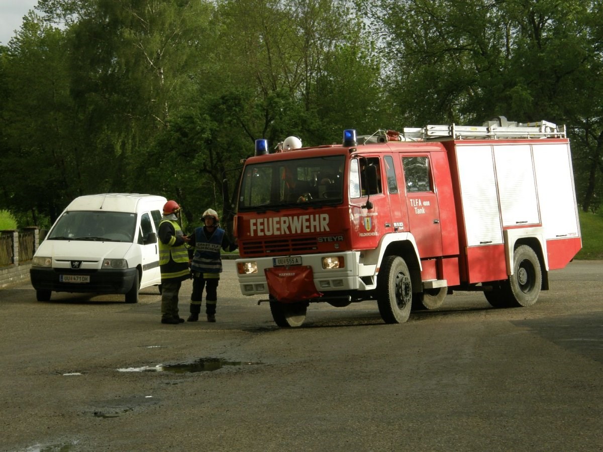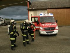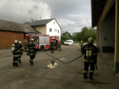 Mit der Beteiligung einer TLF4000 Mannschaft und eines Atemschutztrupps der Feuerwehr Feldkirchen wurde bei der Gruppenübung am 06. Mai 2015 das Thema Brand bearbeitet. In einem idealen Übungsobjekt der Familie Willnauer in Pesenbach wurde eine Verpuffung bei Instandsetzungsarbeiten simuliert. Dabei wurden 2 Personen verletzt die mit Hilfe von schwerem Atemschutz gerettet werden mussten. Im Zuge der Rettungsaktion wurden auch Gasflaschen und Kanister mit Benzin gefunden, die von den Atemschutztrupps aus dem Gefahrenbereich gebracht, und anschließend gekühlt werden musste. Der zweite Teil der Übung widmete sich dem Löschangriff und dem Aufbau einer Löschwasserleitung. Da in der Ortschaft Pesenbach keine zentrale Wasserleitung uns somit auch kein Hydranten-Netz existiert, musst zur Versorgung auf das Wasser des Pesenbach zurückgegriffen werden. Die neuen Erkenntnisse aus der Übung wurden im Anschluss gemeinsam besprochen.