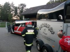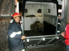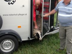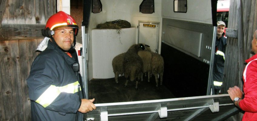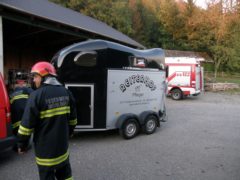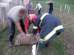 Am späten Nachmittag des 02. Oktober 2015 wurden wir zu einer Rettungsaktion für entlaufene Schafe gerufen. Vier Tiere waren dem Besitzer aus einem Freigehege ausgebrochen und wurden nach der Abgängigkeitsanzeige von einer Polizeistreife im Bereich der Aschacher Bundesstraße B131 gesichtet. Nach Alarmierung durch die Landeswarnzentrale startet um 17:44 Uhr der Feuerwehreinsatz um die entlaufenen Tiere wieder einzufangen. Mit drei Einsatzfahrzeugen und 18 Einsatzkräften wurde als erstes die stark befahrene B131 gesichert und danach versucht, die Schafe von der Bundesstraße fernzuhalten. Umzingelt von den Feuerwehrleuten wurden die Schafe entlang des Roßbachs über einige bereits abgeerntete Felder geleitet. Nach ca. 1,5 Kilometer querten die Tiere erneut die bereits gesicherte Bundesstraße und konnten dort von den Einsatzkräften in eine Pferdekoppel in der Ortschaft Freudenstein getrieben werden. Am anderen Ende der Koppel gelang es uns, die Tiere in eine Scheune zu locken und sie an der weiteren Flucht zu hindern. Mit einem kurzfristig organisierten Pferdeanhänger, wurden die Schafe schließlich abtransportiert und unverletzt an den Besitzer übergeben. Um 19:25 Uhr konnte der Einsatz zur Tierrettung schließlich erfolgreich beendet werden.