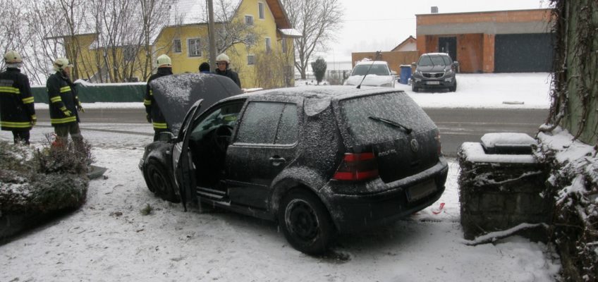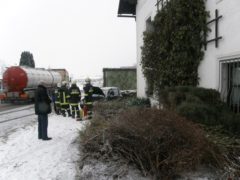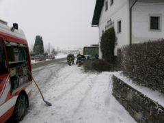 Bei winterlichen Fahrverhältnissen kam am Montag den 04.01.2016 zur Mittagszeit ein Fahrzeug von der Aschacher-Bundesstraße B131 ab und prallte gegen eine Hausmauer. Danach blieb das Unfallfahrzeug in der Garageneinfahrt des Anwesens liegen. Die Lenkerin des PKW wurde bei diesem Zusammenstoß verletzt und musste mit dem Arbeiter -Samariterbund Feldkirchen zur weiteren Untersuchung in ein Krankenhaus eingeliefert werden. Unsere Feuerwehr sicherte mit zwei Fahrzeugen und 13 Einsatzkräften die Unfallstelle und das Fahrzeug ab und führte Verkehrsregelungen durch. Des Weiteren wurden die ausgelaufenen Flüssigkeiten aufgefangen und mit Ölbindemittel gebunden. Nach dem Abtransport des Unfallfahrzeugs durch ein Abschleppunternehmen war der Einsatz um 13:15 Uhr beendet.