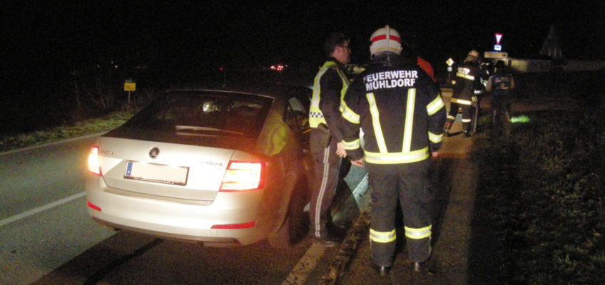 Im Kreuzungsbereich Oberhart der Aschacher Bundesstraße – B131 ereignete sich am Mittwoch den 09.11.2016 um ca. 18:00 Uhr ein Verkehrsunfall mit zwei Fahrzeugen. Ein PKW wurde beim Abbiegen von einem nachkommenden Fahrzeug erfasst und durch die Wucht des Aufpralls von der Straße gedreht. Einer der beiden Lenker erlitt dabei Verletzungen und musste zur weiteren Untersuchung in ein Krankenhaus nach Linz eingeliefert werden. Für die Versorgung des Unfalllenkers und die Aufräumarbeiten wurde die Aschacher Bundesstraße B131 von der Feuerwehr gesperrt und großräumig über die Goldwörther Landesstraße umgeleitet. Nach der Freigabe der Unfallstelle konnten die Unfallfahrzeuge abtransportiert und die ausgelaufenen Flüssigkeiten gebunden werden. Um etwa 19:25 Uhr wurde der Einsatz schließlich beendet.