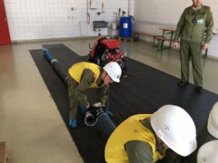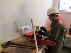 Die Prüfung umfasste das Erkennen und Zuordnen von Geräten für den Brand- und Technischen-Einsatz, das Absichern einer Unfallstelle, das Herstellen einer Saugleitung von der Wasserentnahmestelle bis zur Tragkraftspritze sowie praktische Übungen und Aufgaben in Erste Hilfe. Nebenbei mussten auch das Auslegen einer Angriffsleitung, das richtige Aufziehen einer Löschleitung, ein Planspiel und eine theoretische Prüfung absolviert werden.