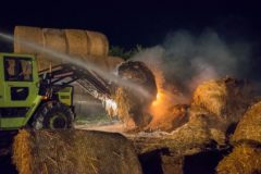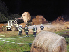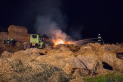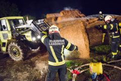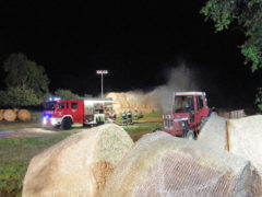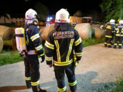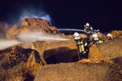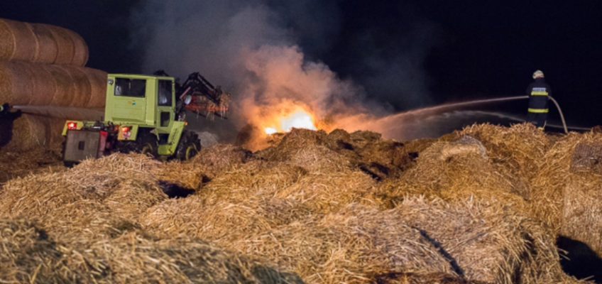 In den frühen Morgenstunden des 14.05.2017 wurde unsere Feuerwehr zum Brand eines Strohballenlagers in Landshaag nachalarmiert. Aus bisher noch ungeklärter Ursache hatte ein großes Lager an Stroh-Rundballen zu brennen begonnen. Nachbarn hatten den Brand bemerkt und alarmierten daraufhin die Feuerwehr. Nach der genaueren Erkundung der Schadenslage, wurde von der Feuerwehr Landshaag die Alarmstufe II ausgelöst. Die Aufgabe unserer Feuerwehr bestand im Aufbau einer Wasserzubringerleitung von der Donau, dem Aufbau und den Betrieb des Atemschutzsammelplatzes sowie den Löscharbeiten mit schwerem Atemschutz. Diese wurden von zwei Traktoren unterstützt welche die Rundballen für die Löscharbeiten zurechtlegten.