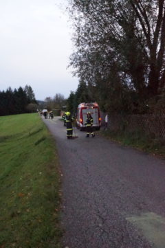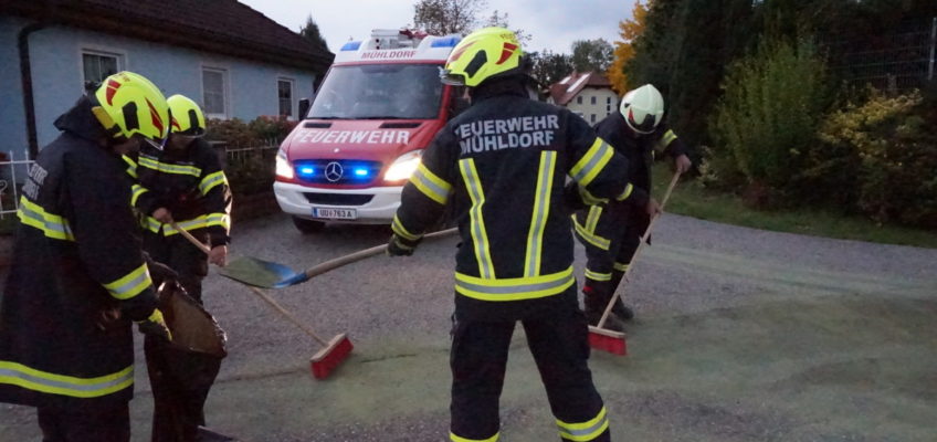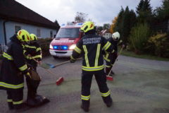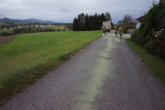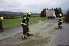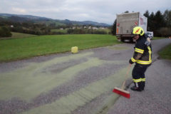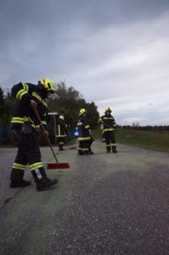 Am Abend des 09. Oktober 2017 wurde unsere Feuerwehr zur Beseitigung einer Ölspur nach Freudenstein gerufen. Ein Logistik LKW hatte im Bereich des Schauerbachweges, durch einen Defekt im Treibstoffsystem, eine große Menge an Dieselöl verloren. Das technische Gebrechen konnte durch den Fahrer des LKW zwar sehr schnell erkannt werden, es hatte sich aber bereits eine ca. 100m lange Ölspur gebildet. Nach dem Absichern der Einsatzstelle wurde sofort mit dem Binden der ausgelaufenen Betriebsmittel begonnen. Nach der Reinigung der Straße, wurde der Einsatzort schließlich durch Ölspur Warntafeln abgesichert.
