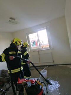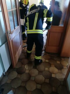 Am 21.04.2020 wurde unsere Feuerwehr von der OÖ-Landeswarnzentrale mittels Sirenenalarm zu einer technischen Hilfeleistung in die Freudensteiner-Straße gerufen. Bei Umbauarbeiten hatte der Besitzer eines Wohnhauses die Hauptwasserleitung im Gebäude beschädigt, worauf das gesamte Erdgeschoss geflutet wurde. Gemeinsam mit der Feuerwehr, konnte ein weiteres Austreten des Wassers schließlich gestoppt werden. Anschließend wurde das Erdgeschoss mittels Pump-Wassersauger trockengelegt. Dank dem raschen Eingreifen der Feuerwehr und dem Umstand das sich das Erdgeschoss am Beginn der geplanten Umbauarbeiten befand, konnte das ausgetretene Wasser keinen größeren Schaden verursachen. Da sich der Einsatz zur Zeit des COVID-19 Lockdown ereignete, musste dieser Einsatz jedoch mit Schutzmasken und Sicherheitsabstand abgewickelt werden.